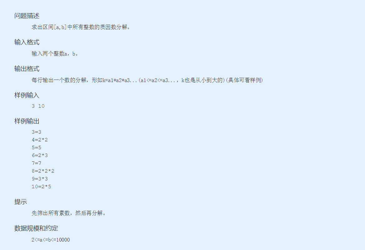 Acmno 39 分解质因数求出区间 A B 中所有整数的质因数分解 蓝桥杯训练 Hwp Csdn博客